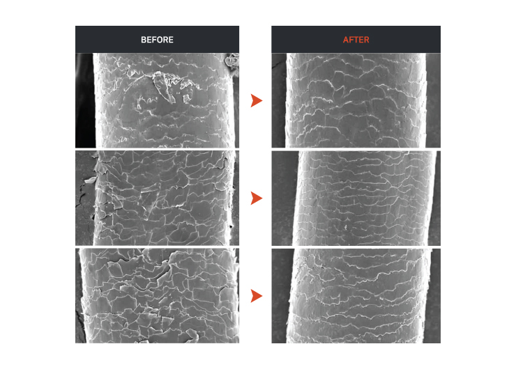 모발은 케라틴 단백질(80~90%)로 구성되어 있으며, 펌, 염색, 드라이, 자외선, 담배, 미세먼지 등 다양한 외부 자극에 의해 가늘어지고 푸석해질 수 있습니다. 컨디션이 저하된 모발은 단백질 간 결합을 강화하는 집중 관리가 도움을 줄 수 있습니다. 모발 타입에 맞는 케어를 통해 자연스러운 부드러움과 탄력을 더하고, 건강한 모발 상태를 유지하도록 도와드립니다.